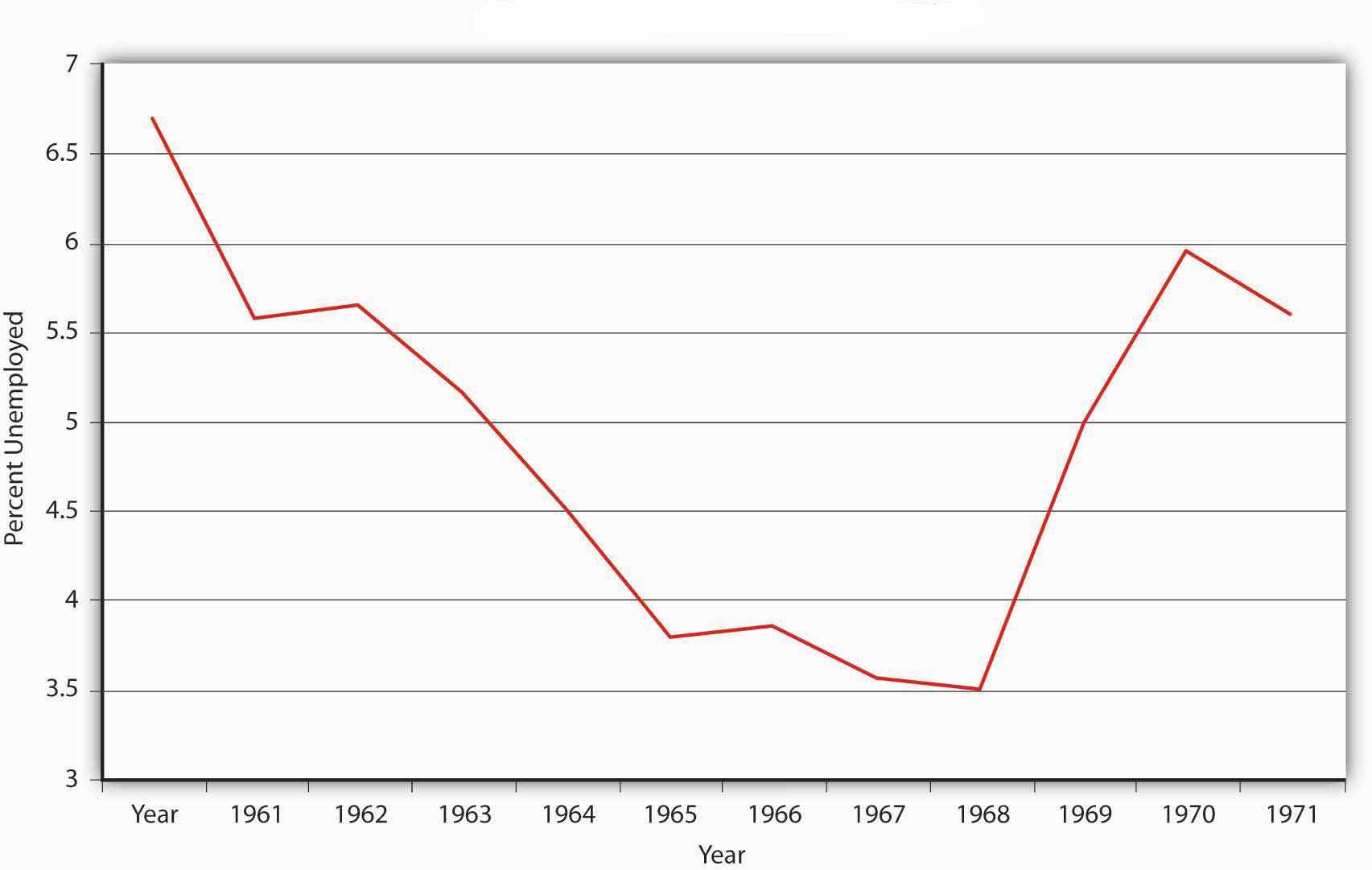 Figure 25.4 U.S. unemployment rates, 1961–1972