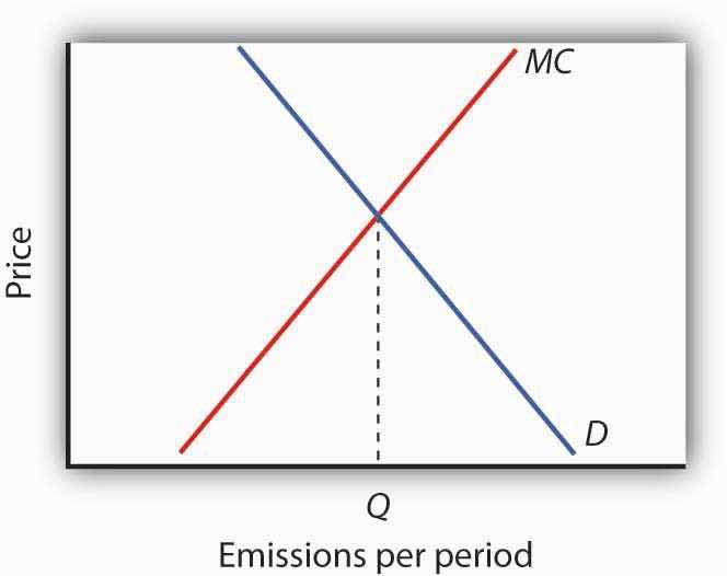 Figure 18.3 The Marginal Cost of Emissions and the Marginal Benefit of Abatement