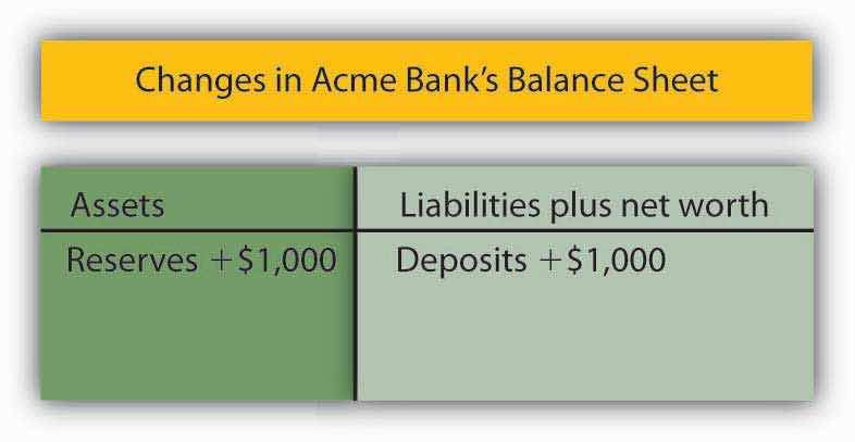 At this stage, there has been no change in the money supply. When the customer brought in the $1,000 and Acme put the money in the vault, currency in circulation fell by $1,000. At the same time, the $1,000 was added to the customer’s checking account balance, so the money supply did not change.