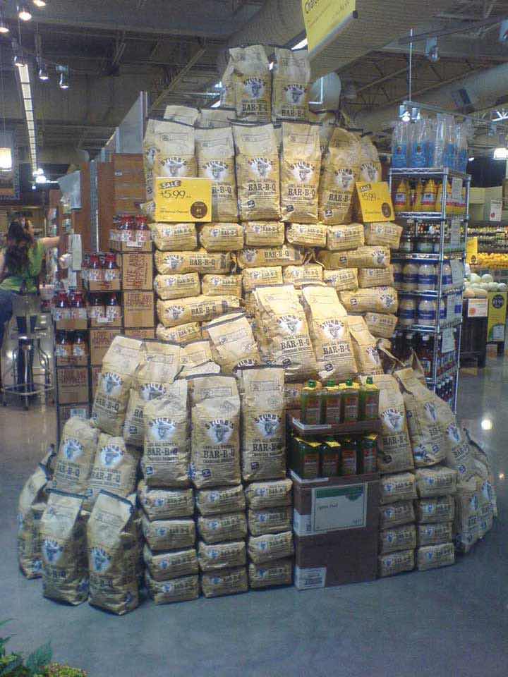The charcoal shown in the photo is priced at $5.99 a bag, which is an example of odd-even pricing, or pricing a product slightly below the next dollar amount.
