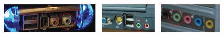Figure 1.10 Audio Output Ports on Three Computers