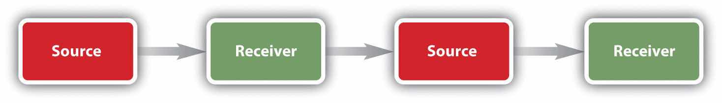 One of the biggest concerns that some people have with the interactional model of communication is that it tends to place people into the category of either source or receiver with no overlap. Even with Schramm’s model, encoding and decoding are perceived as distinct for sources and receivers. Furthermore, the interactional model cannot handle situations where multiple sources are interacting at the same time.Mortenson, C. D. (1972). Communication: The study of human communication. New York, NY: McGraw-Hill. To address these weaknesses, Dean Barnlund proposed a transactional model of communication.Barnlund, D. C. (2008). A transactional model of communication. In C. D. Mortensen (Ed.), Communication theory (2nd ed., pp. 47–57). New Brunswick, NJ: Transaction. The basic premise of the transactional model is that individuals are sending and receiving messages at the same time. Whereas the interactional model has individuals engaging in the role of either source or receiver and the meaning of a message is sent from the source to the receiver, the transactional model assumes that meaning is cocreated by both people interacting together.