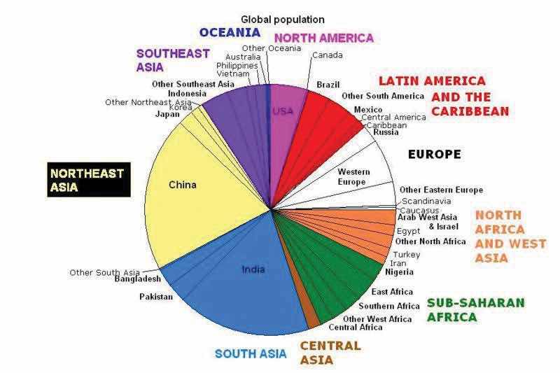 Source: Image courtesy of Brutannica, http://commons.wikimedia.org/wiki/File:World_population_pie_chart.JPG.