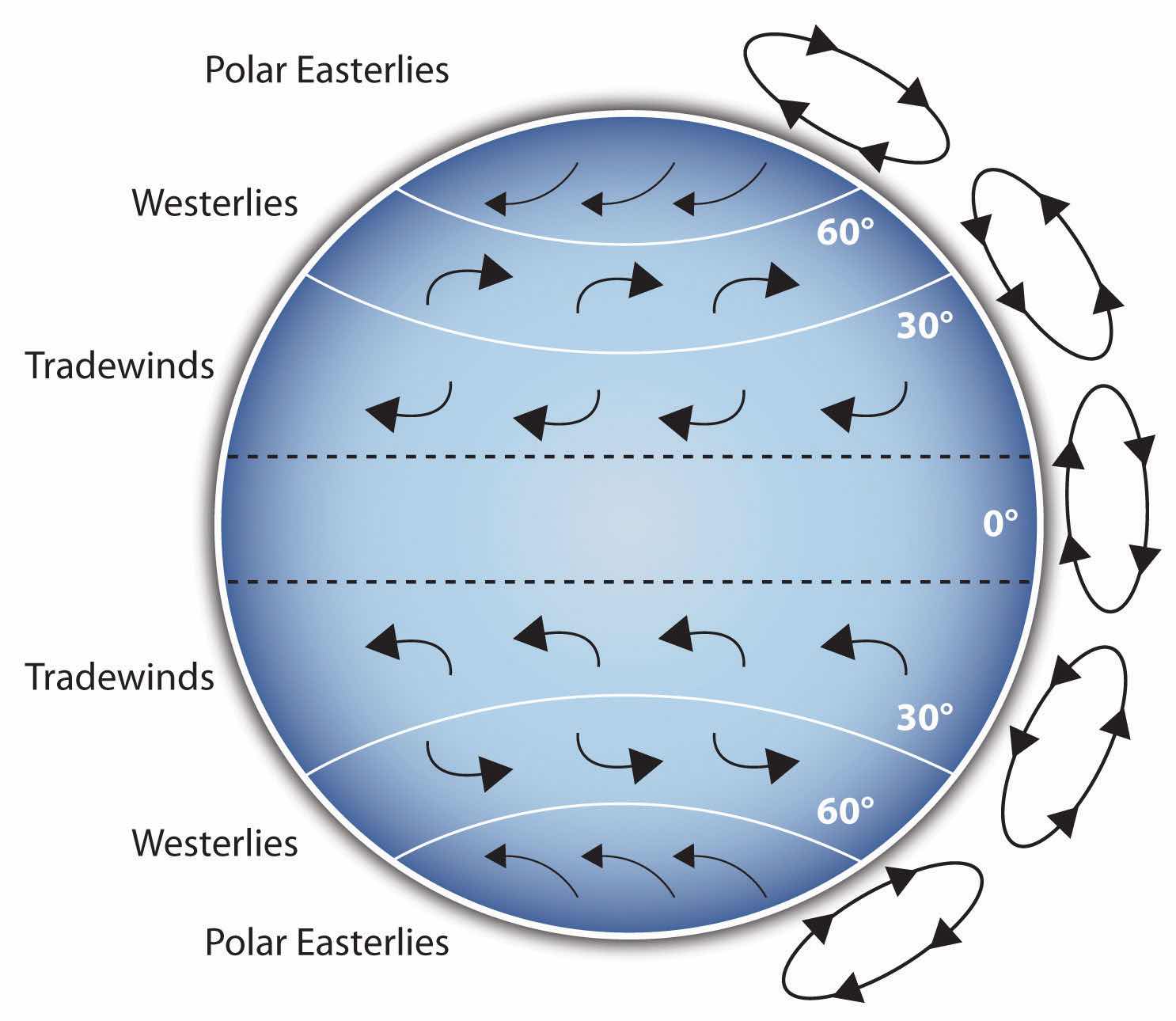 If your speech is about the impact of the Coriolis effect on tropical storms, for instance, you will have great difficulty clarifying it without a diagram because the process is a complex one. The diagram in Figure 15.1 "Coriolis Effect" would be effective because it shows the audience the interaction between equatorial wind patterns and wind patterns moving in other directions. The diagram allows the audience to process the information in two ways: through your verbal explanation and through the visual elements of the diagram.