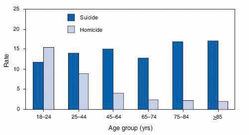 Source: Image courtesy of Centers for Disease Control and Prevention, http://commons.wikimedia.org/wiki/File:Homicide_suicide_USA.gif.