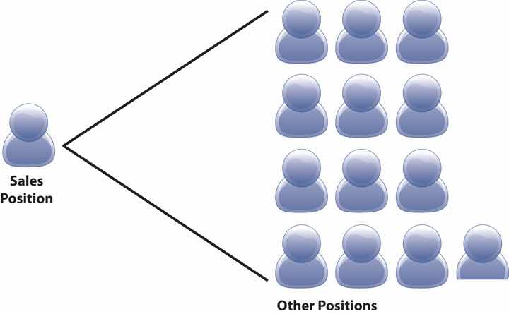 The sales department is the heartbeat of every company. According to Selling Power Magazine, the manufacturing and service companies listed on its “Power Selling 500 Report” generate $6.7 trillion dollars in sales annually. Each salesperson supports an average of 12.9 other jobs within the company.“Selling Power 500: America’s 500 Largest Sales Forces,” Selling Power, October 2008, 53. This means that the level of sales that is generated by each salesperson actually pays for the roles in human resources, marketing, operations, and other departments. It makes sense that the salespeople fund the operations of the company. After all, it is a salesperson with whom you interact when you buy a Nissan Cube, lip gloss at Sephora, or an interview suit at Macy’s. The people in the sales department “ring the cash register” (whether the business has a cash register or not). They are responsible and accountable to deliver sales to generate revenue and profit, which are required to operate and to invest in the company. In fact, the sales department is considered so important that even in this difficult economy, companies should continue to fill open sales positions even if they are not hiring in other departments, according to Dennis J. Ceru, a professor of entrepreneurship at Babson College and the president of Strategic Management Associates, a consulting firm in Wellesley Hills, Massachusetts.Elaine Pofeldt, “Empty Desk Syndrome: How to Handle a Hiring Freeze,” Inc., May 1, 2008, http://www.inc.com/magazine/20080501/empty-desk-syndrome.html (accessed June 7, 2009). Without a healthy and strong sales department, companies can wither and die.