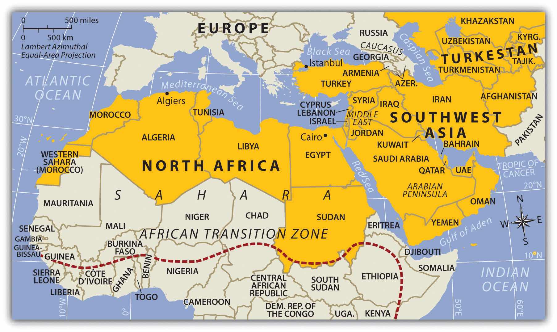 Figure 8.1 The Regions of North Africa, Southwest Asia, and Turkestan