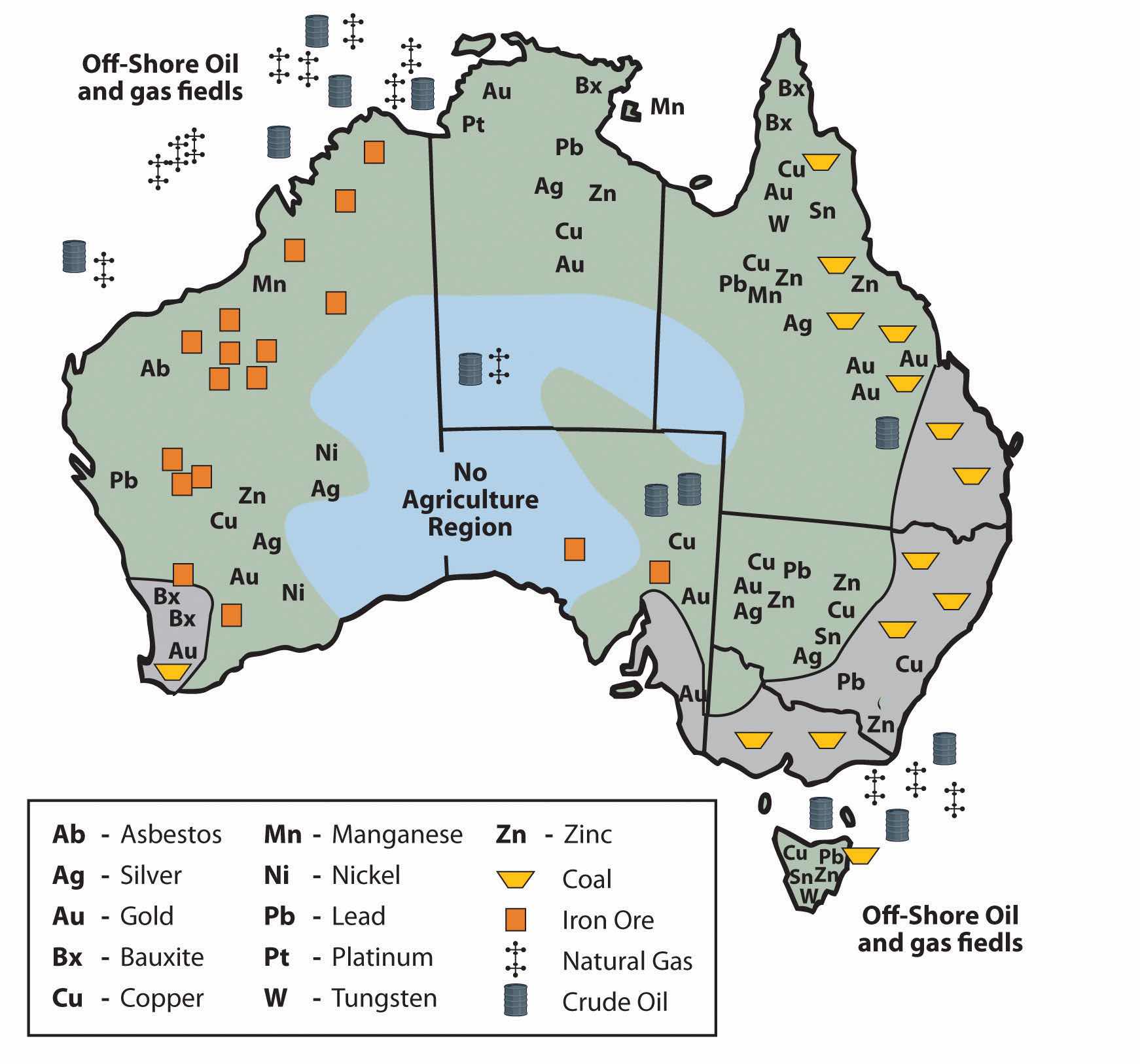 Figure 12.9 Australia’s Distribution of Raw Materials