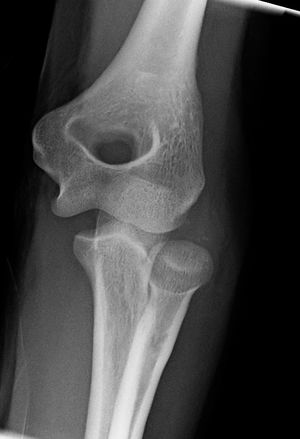 - Displaced equilateral triangle of olecranon and epicondyles (undisturbed in supracondylar fracture)